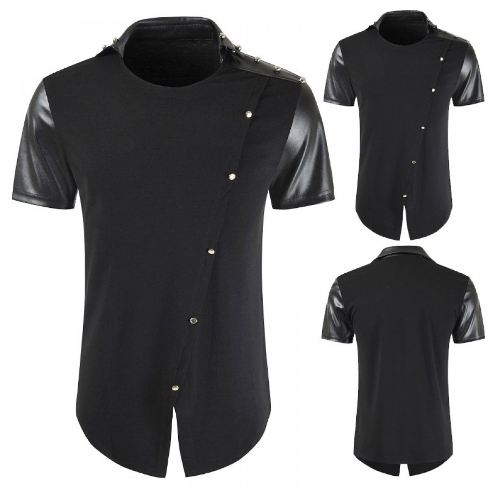 Men's Irregular Shackles Men's Fashion Personality Short-Sleeved T-Shirt Mens Casual