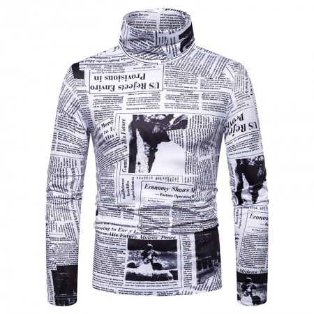 New Men's Large Size 3D English Printing High Neck Long Sleeve T-Shirt Bottoming Shirt