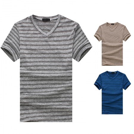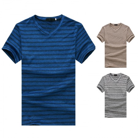 New Style Flat Men's Fashion Large Size Striped Short Sleeve T-Shirt