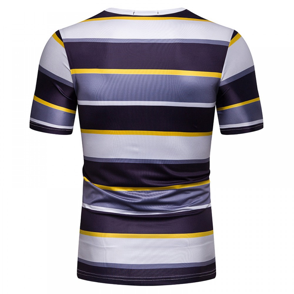 New Summer Men's Short-Sleeved T-Shirt Men's Contrast Striped Slim Casual T-Shirt
