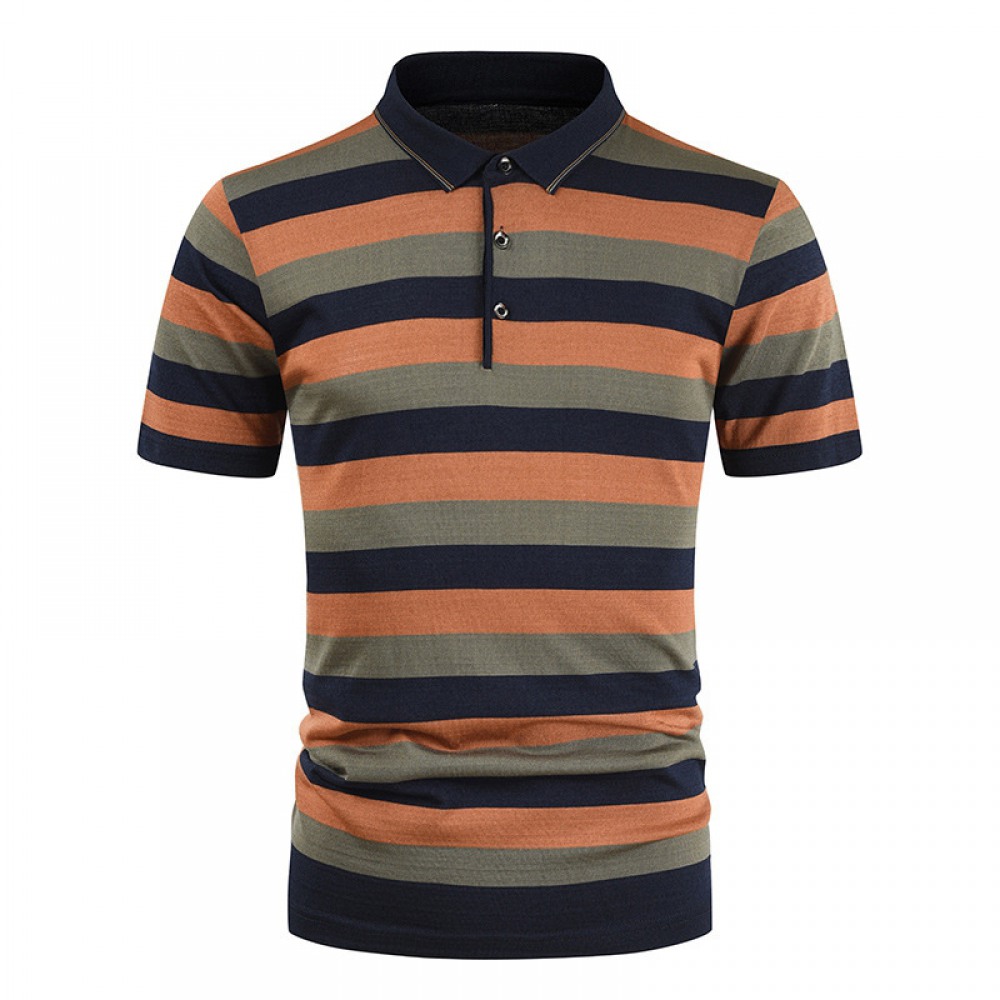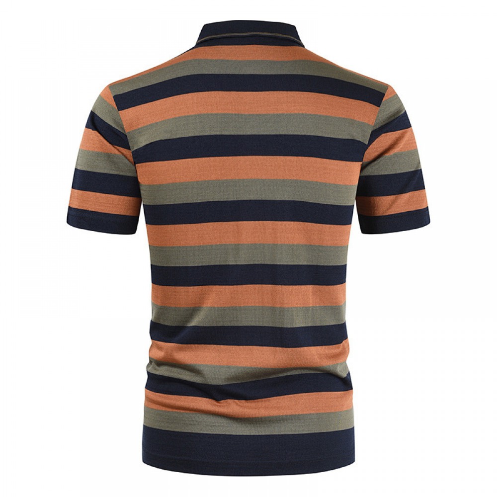 Summer New Men's Casual Loose T-Shirt Striped Color Matching Pocket Men's T-Shirts Short Sleeve